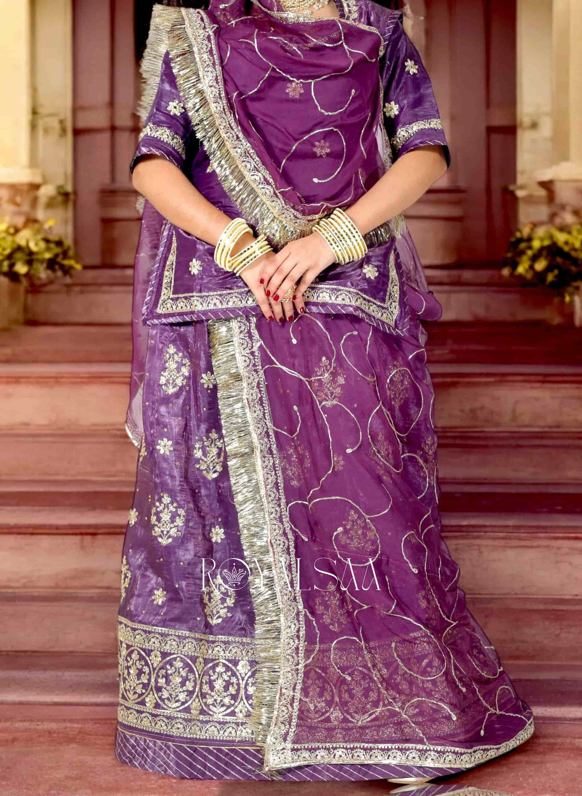 Work : Gold Metallic threads, Dabka, Cutdana, Kundan work