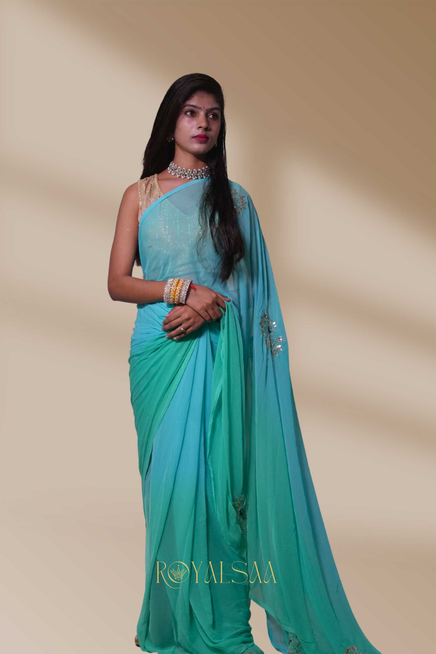 Gota Saree – Handcrafted Serenity with Peacock Detailing