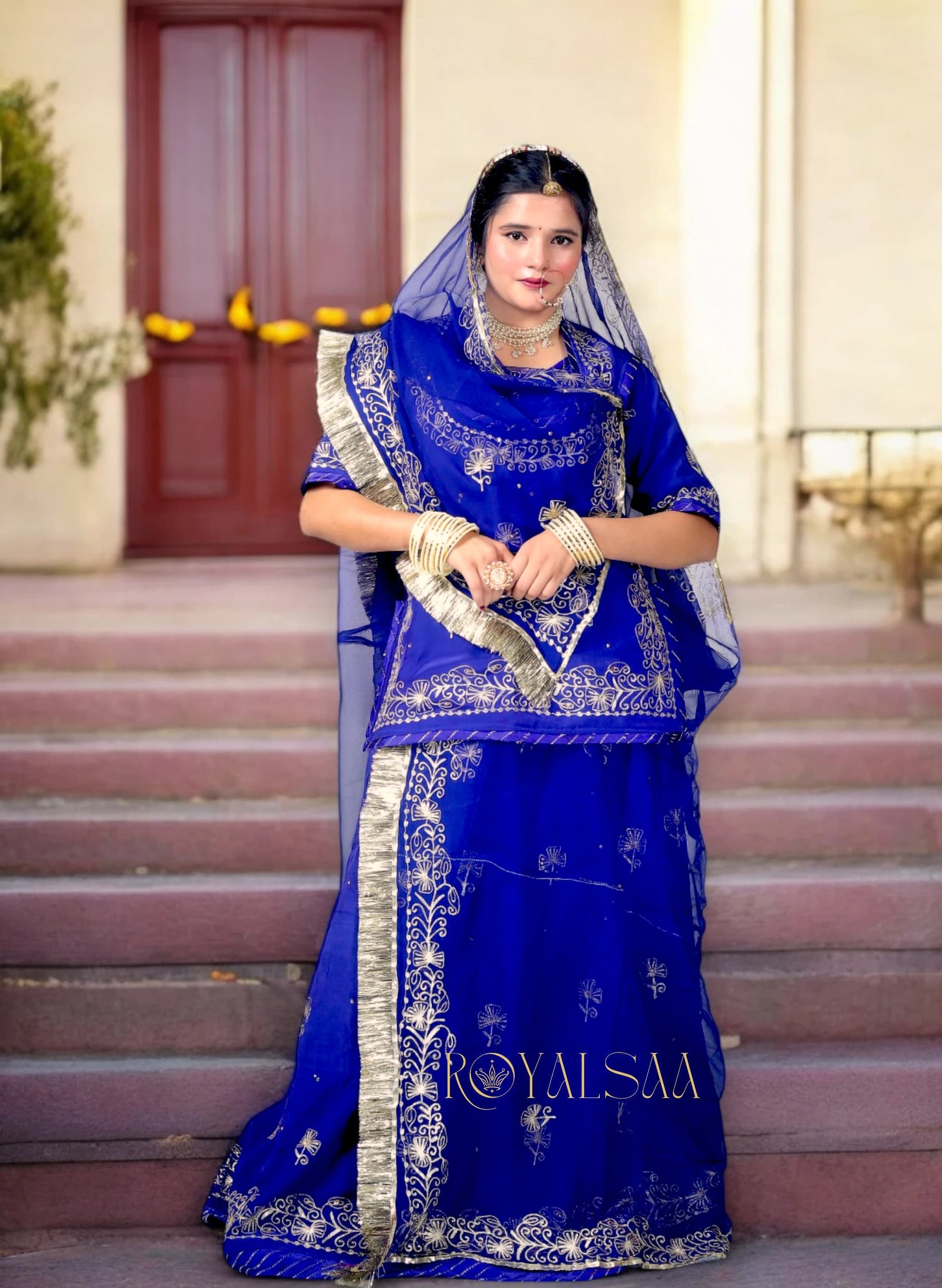 Royal Blue Rajputi Poshak – Silk with Zari & Chain Stitch Stone Work