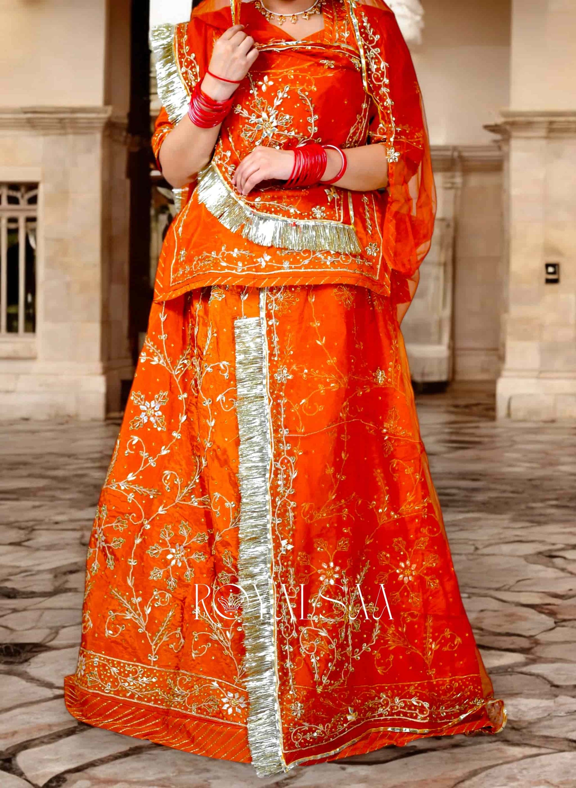 Rust Orange Rajputi Poshak – Crap Silk with Zardozi